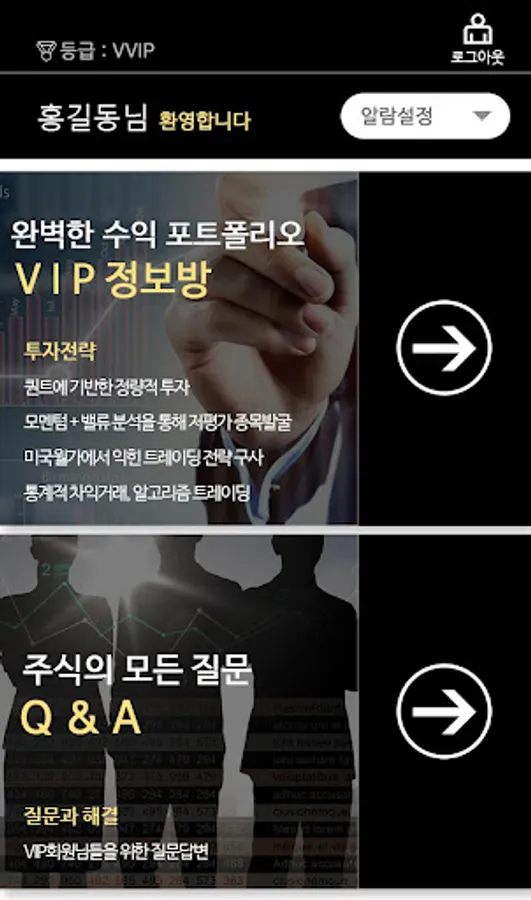 VIP members of Korea Stock Exchange Broadcasting will be able to communicate with experts and researchers more easily and quickly, and we will provide better service by contacting the VIP members with the main information and each member's items.