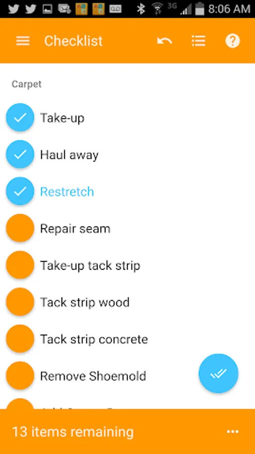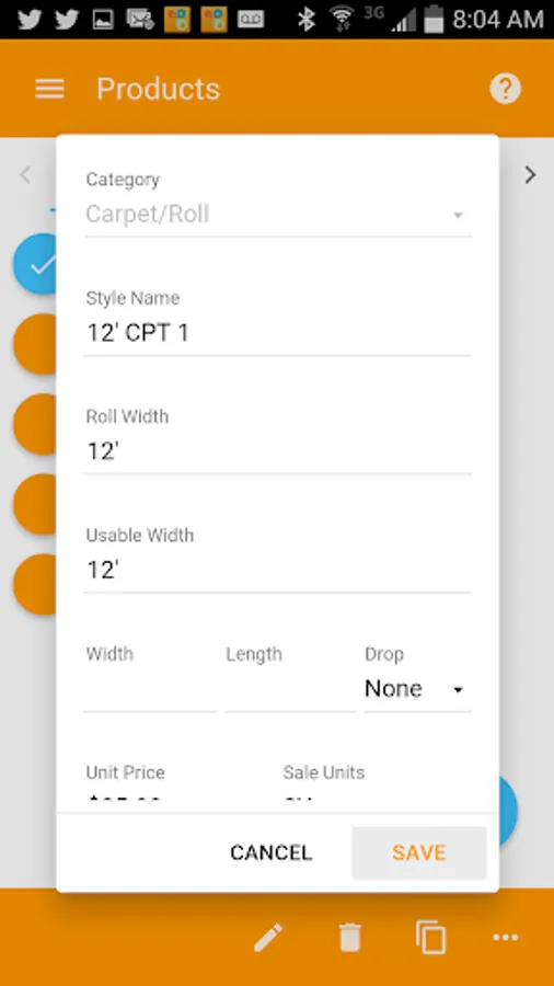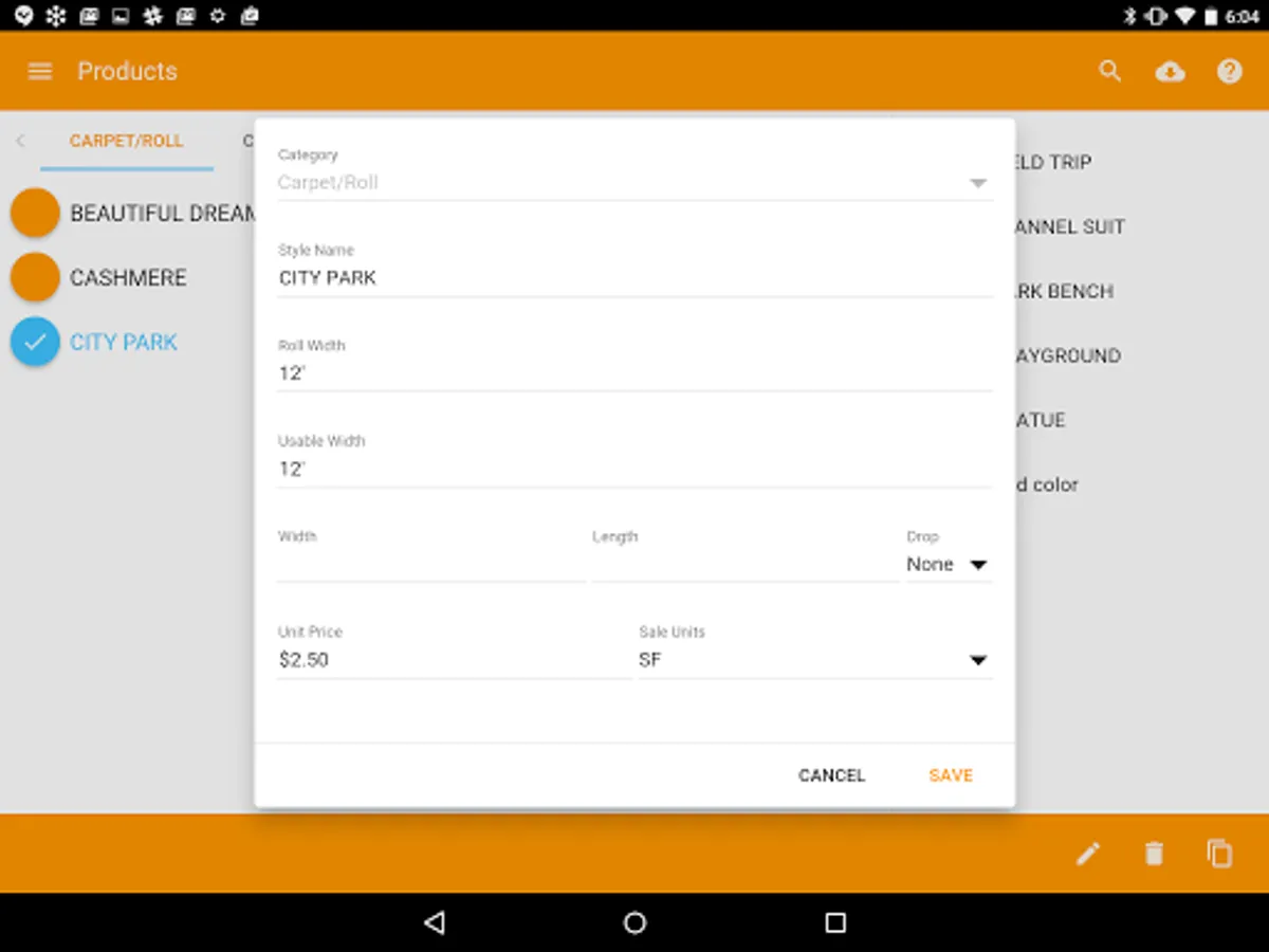 · Select the products to be estimated, including carpet, vinyl, tile & plank