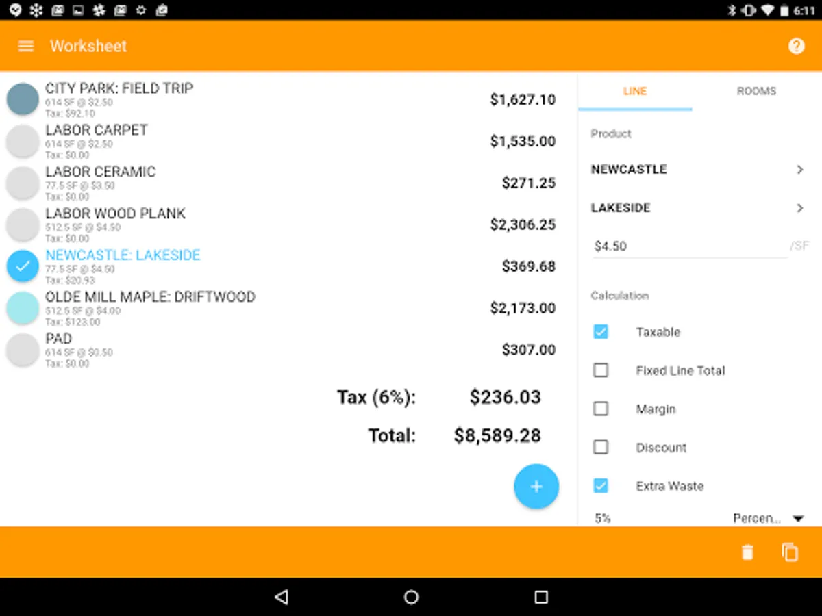 · Use room area or match material to quickly calculate add-on and labor line item amounts