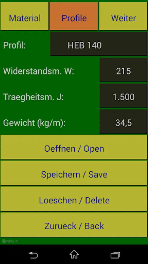 With this app simple static calculations can be done with different materials. Even profiles with various cross-sections can be easily calculated.