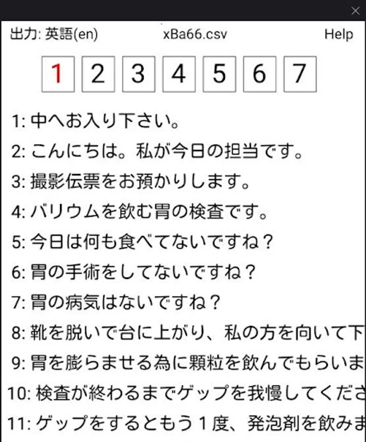 Text for barium examination (Japanese, English, Spanish, Chinese, Korean, Indonesian) is imported.