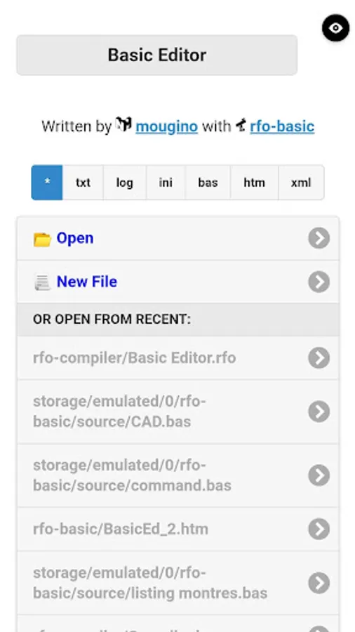 meaning a simple tap on a file with one of these extensions in your file explorer will propose to open it with the Basic Editor.