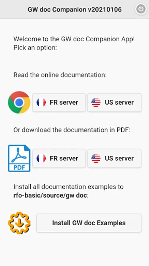 Access the GW documentation (online or PDF version) and download all the documentation examples to your device so that you can run them with RFO BASIC!