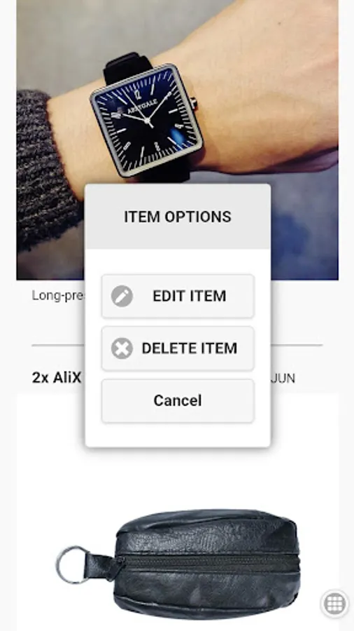 Once you add an item, you can edit or remove it with a long-press on its image.