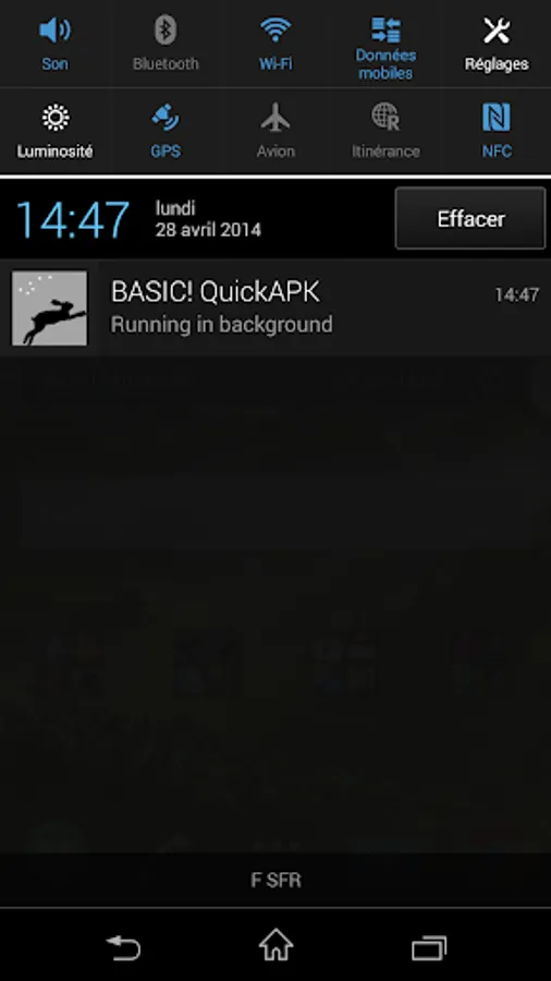 After download, run the BASIC! QuickAPK (WiFi) app on your Android device and hit the Home key to send it to the background. The app will intercept incoming commands from your computer and dialog with the QuickAPK program. No additional configuration is needed: as long as computer and phone or tablet are on the same LAN they autodetect each other.