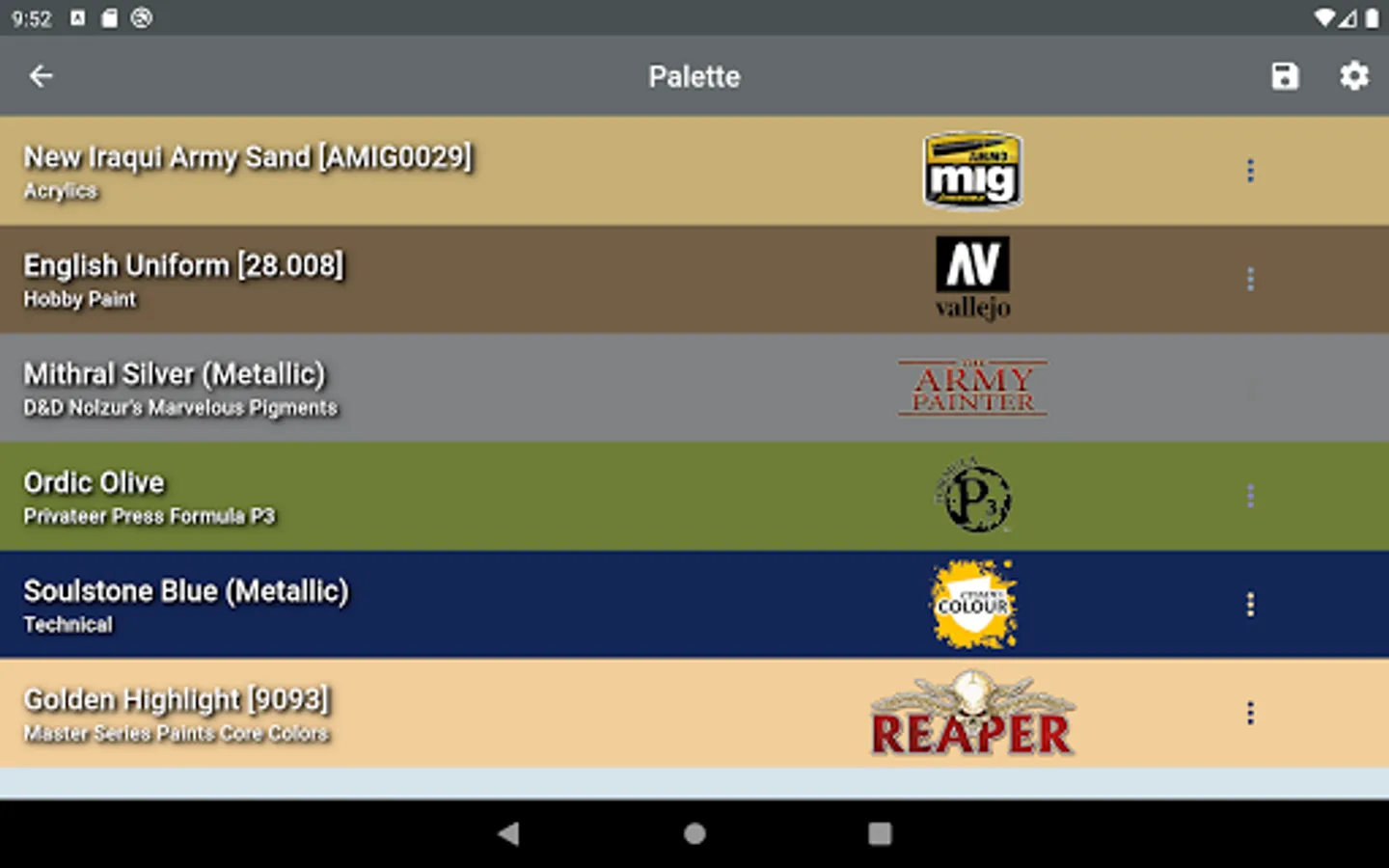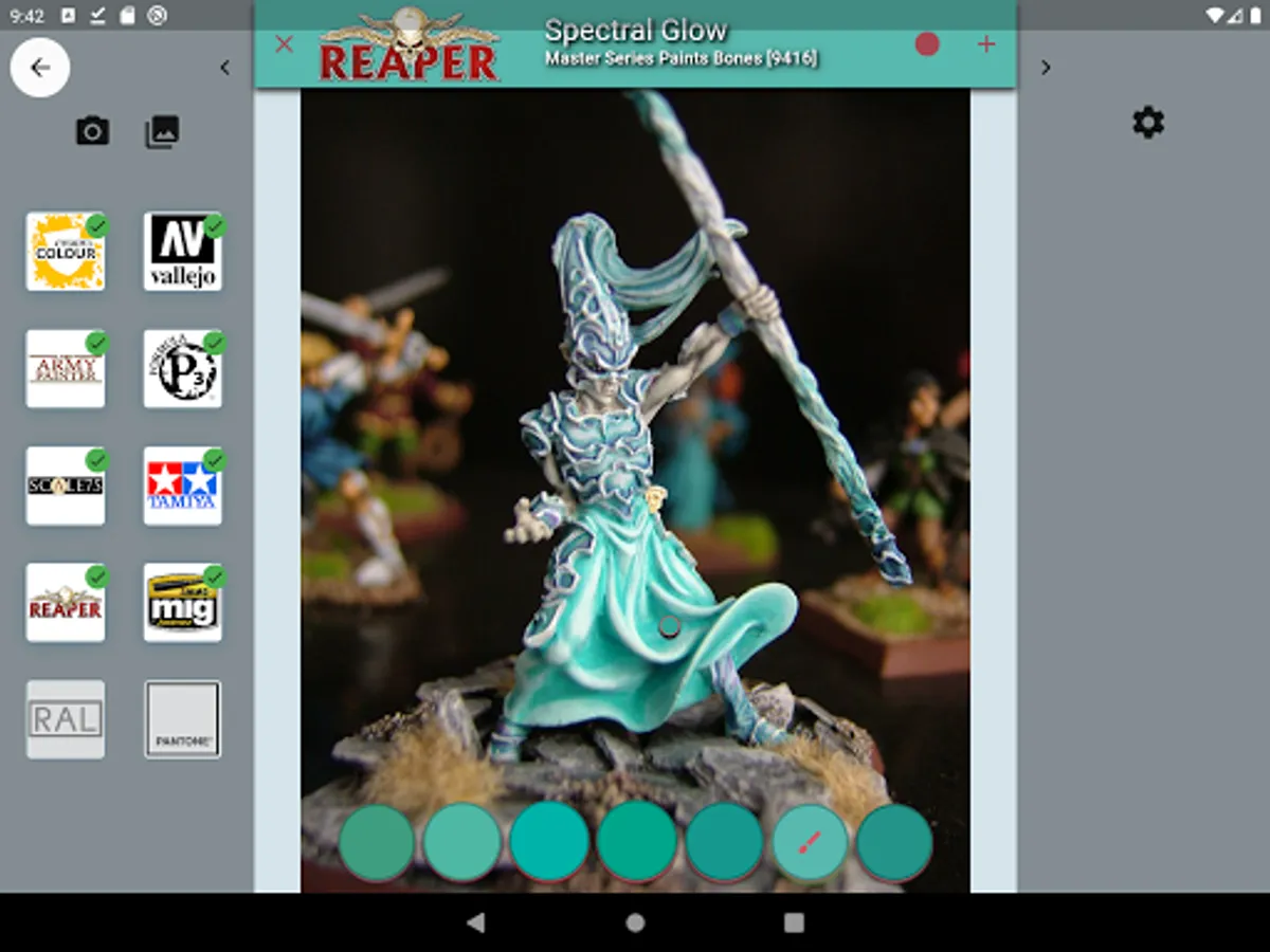 Miniature Painter Pro for all your miniature painting joys. Use the color picker, compare paints across brands, complement colors, mix it up with our paint mixer and store everything in a palette for later use!