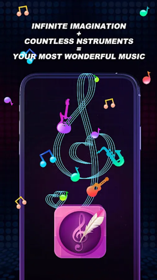Countless instruments-Piano,violin,guitar,harp,saxophone,etc. One Click to generate your music with any instruments you want.