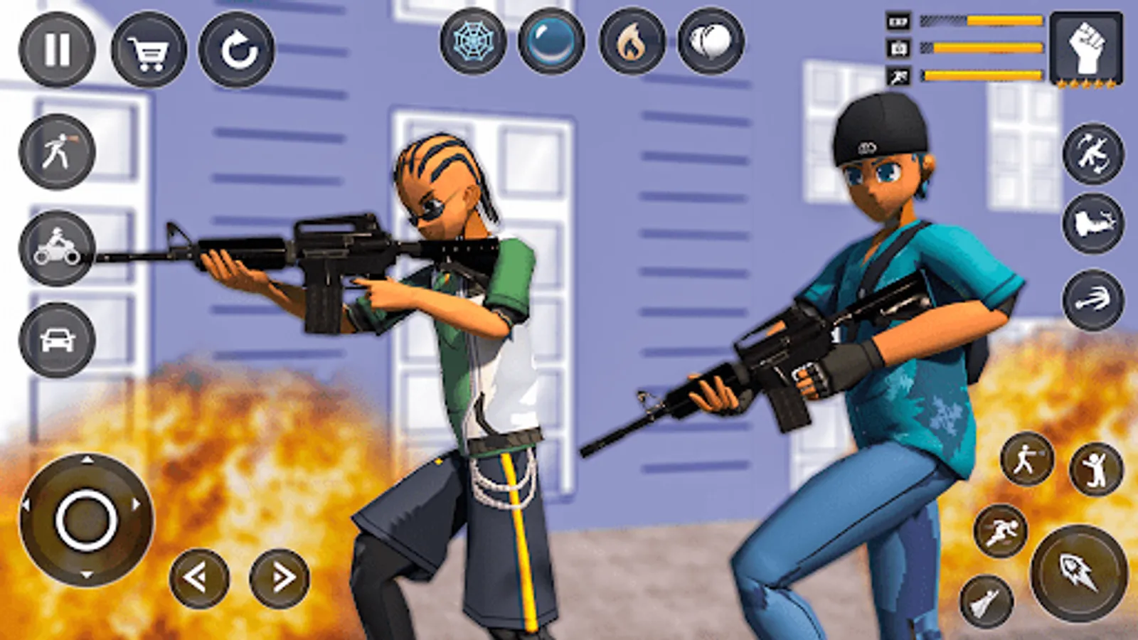 yourself in a gang story and experience various modes of gameplay in the Mafia Crime setting, enhancing your action-fighting skills against the criminal elements of Anime City. As the story unfolds, criminal cops clash with the mafia, and the city becomes a battleground. Witness shooter gangs executing city bank robberies, causing widespread violence and disturbing the peace of innocent citizens caught in the gang wars of Vegas.