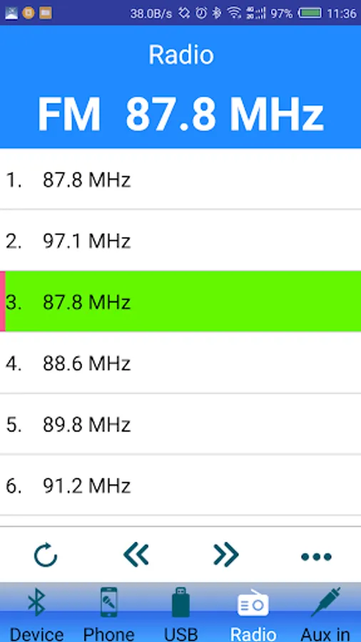 BT 100 is a software that controls the device RV610 playing music and listening to the broadcast via bluetooth connection. You can control the radio, USB, AUX and music on your mobile phone. The interface is simple and easy to use.