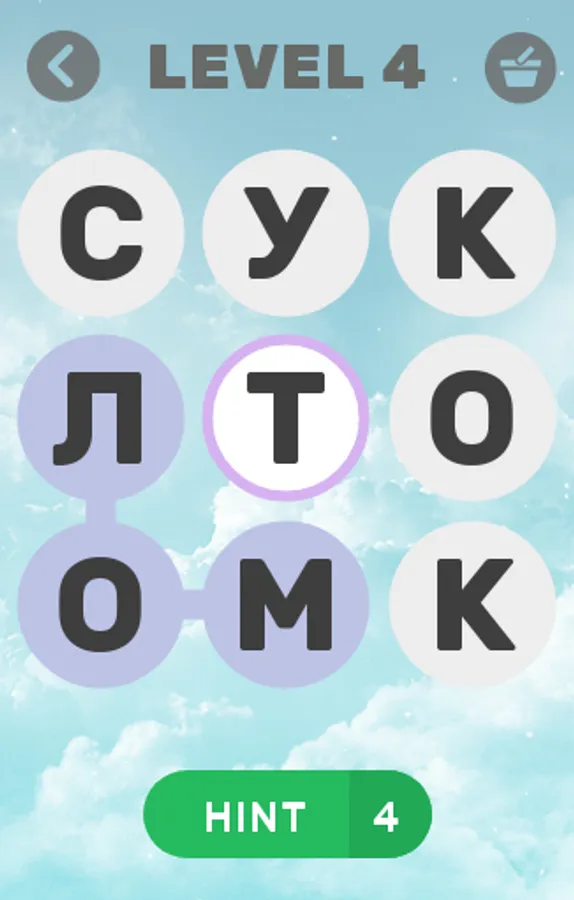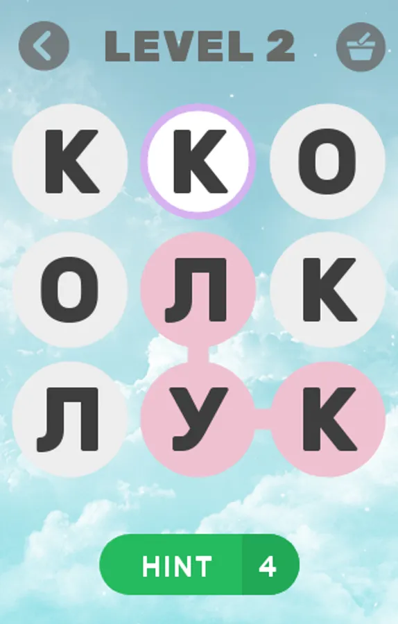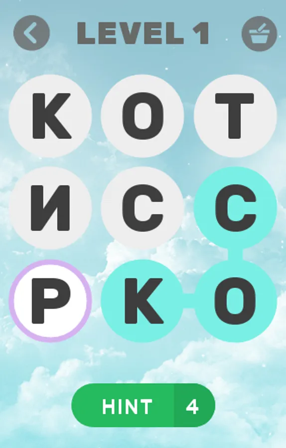 A classic Android game, puzzle, the task is to find all the words hidden in a riddle. If you find a word, select it to remove it from the list of suggested letters. Connect the letters to select a word.