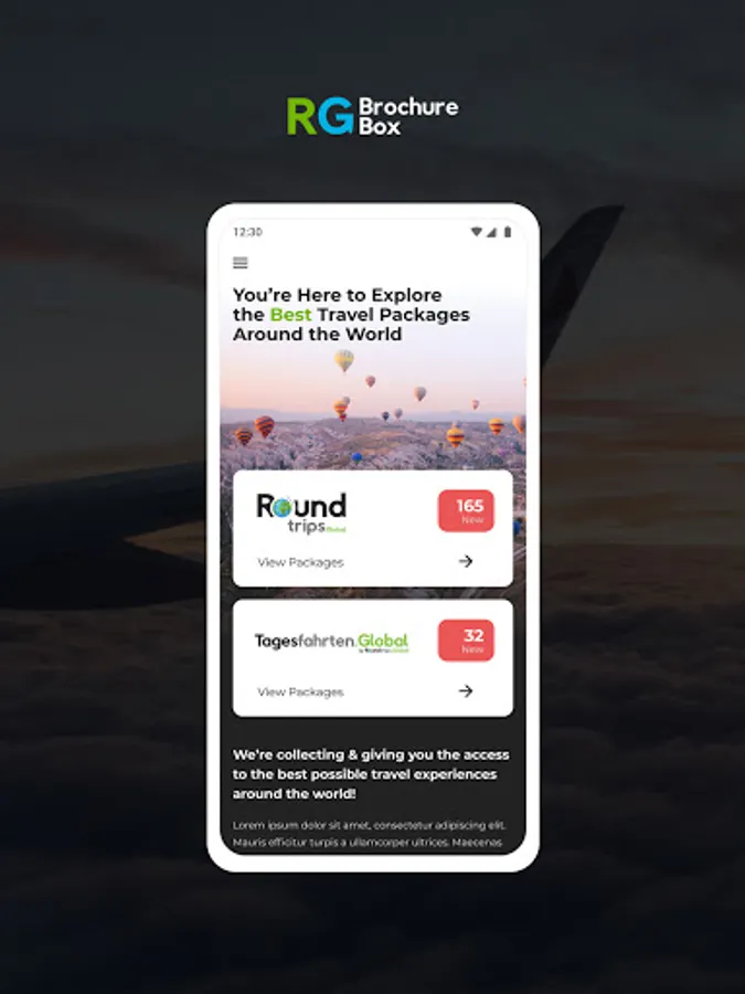 Die Erstellung dieser Reisekatalog-Box war eine bewusste Entscheidung, die Umwelt zu schützen, indem kein Papier verschwendet wird. Somit leistet die RG App unseren persönlichen kleinen Beitrag zur Eindämmung des Klimawandels, gewährt uns aber darüber hinaus auch absolute Flexibilität bei der Veröffentlichung neuer Touren, dem Hinzufügen von Reisedaten bei beliebten Reisen, dem Ändern von Reiserouten, falls erforderlich ... und das alles, ohne auf den typischen jährlichen Katalog-Zyklus warten zu müssen!