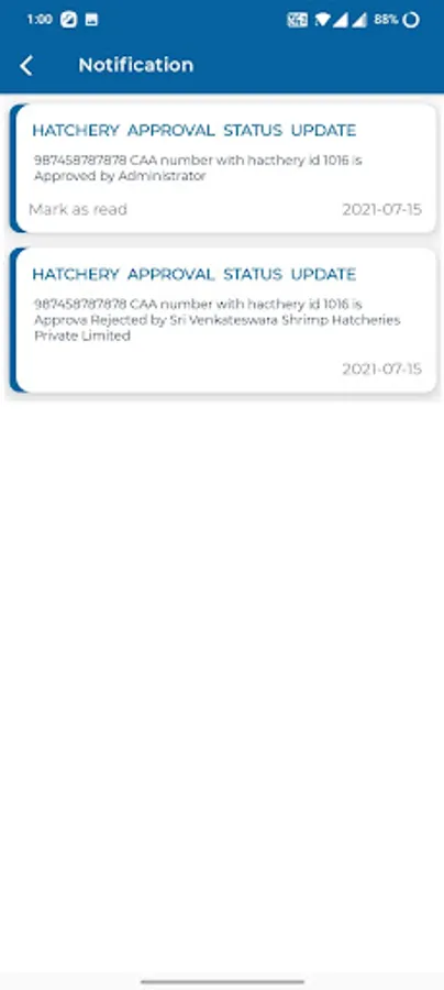 benefit of CAA approved SPF L. vannamei hatcheries. P. monodon importers and Broodstock multiplication centres. It gives hassle free cubicle reservation and also notifies you, whenever there is an availability of vacant cubicle, besides providing you other features of obtaining online quarantine clearance certificate via mobile.