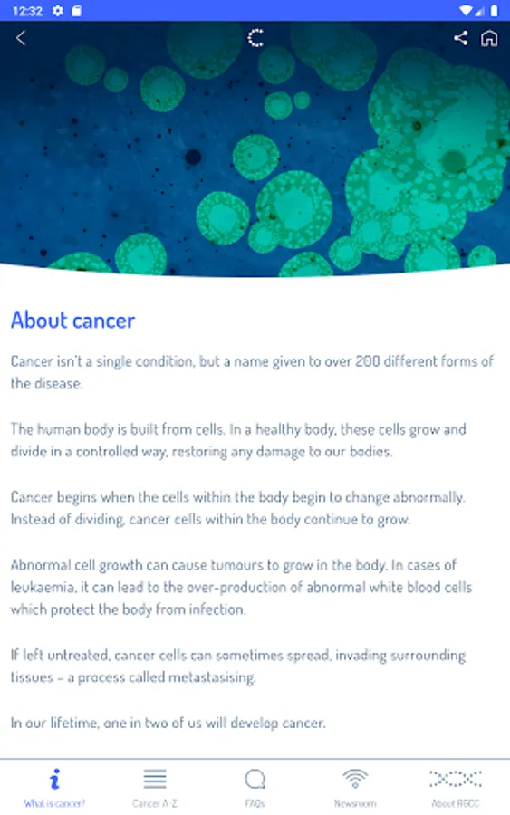 We believe that everyone should have access to the latest information about cancer, which is why we created Cancer A-Z. The app is free to download and always will be.