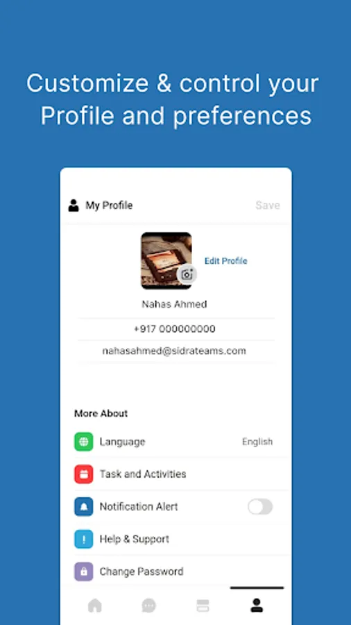 We combines the functionality of a communication platform and a comprehensive task management system.Collaborate with your team, and stay on top of tasks and projects, all within a single, efficient platform. Through our app we simplify your operations and enhance productivity of your company.