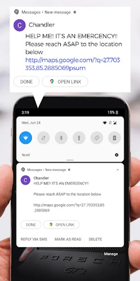 4. The registered emergency contacts receive your SOS Message and a link of your current location as an SMS from your mobile number
