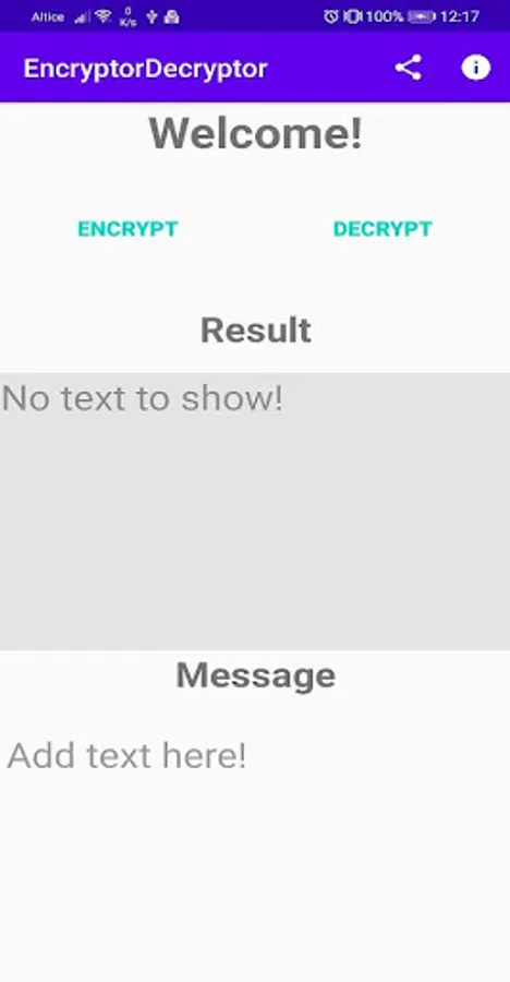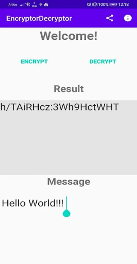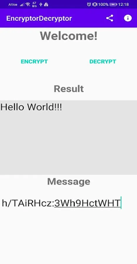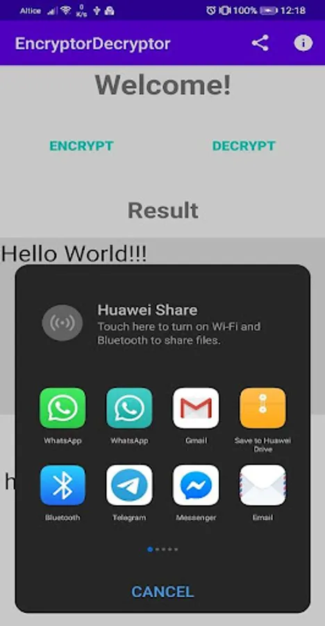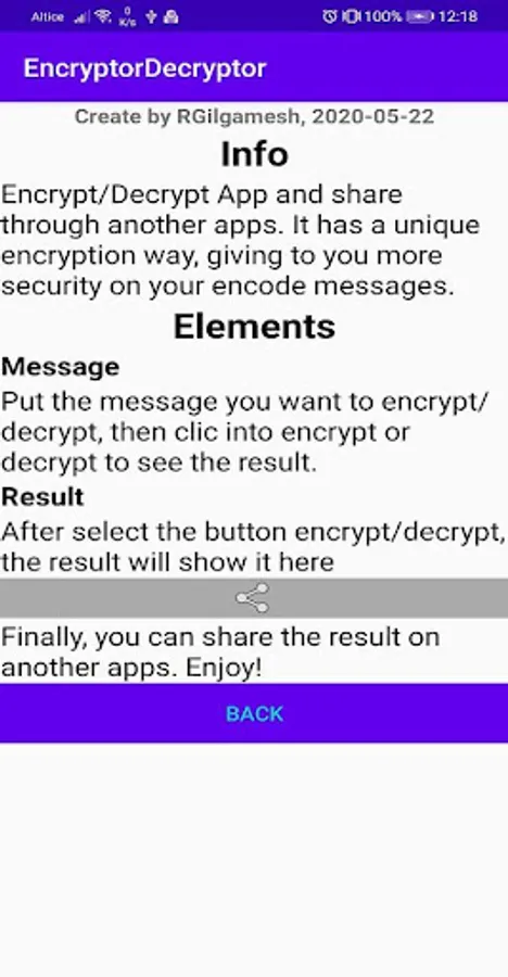 Encrypt/Decrypt App and share through another apps. It has a unique encryption way, giving to you more security on your encode messages.