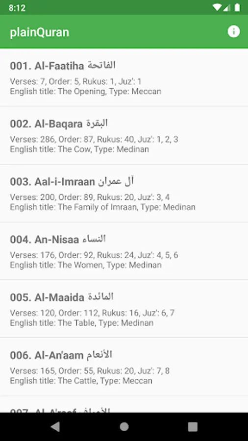 Quran is the central religious text of Islam; plainQuran is a simple Quran reader app with the following attributes: