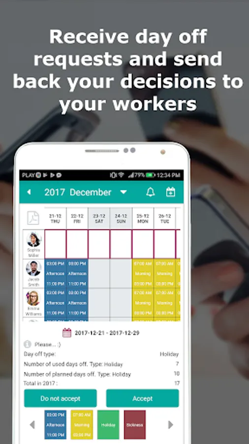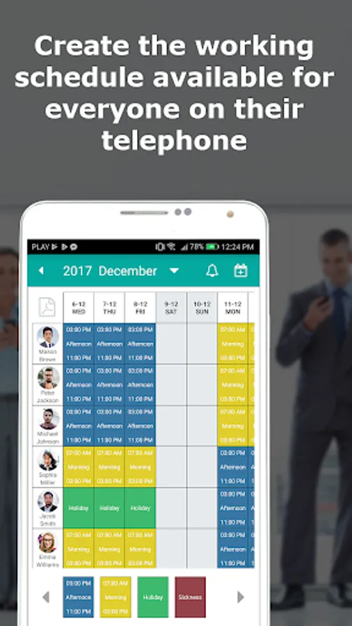 The schedule will be available in the application for all employees who have it, for others there is a possibility of generating a pdf file which can be printed or sent to them.