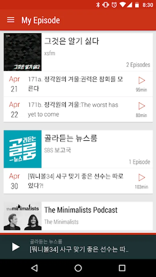* 팟캐스트 주소로 듣고 싶은 방송을 쉽게 추가해서 들을 수 있습니다.