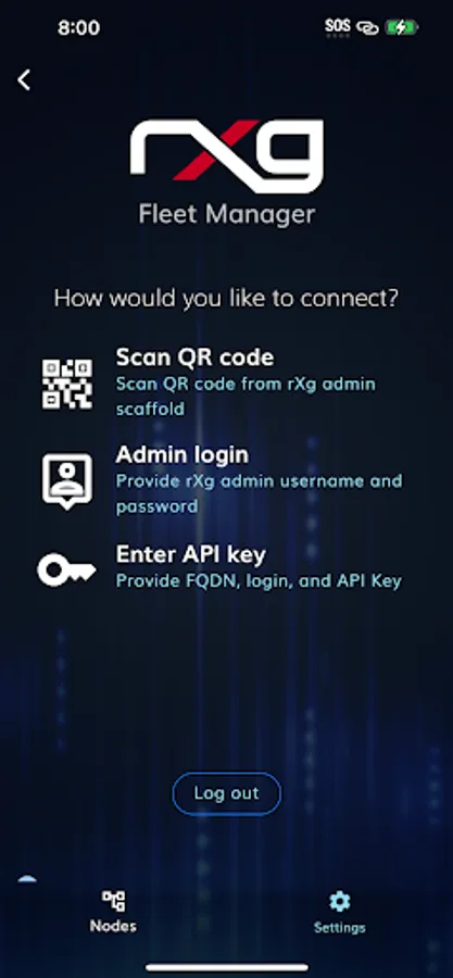 This app is a simplified interface for viewing the RG Nets revenue eXtraction gateway (rXg) Fleet Manager. The goal of this app is to allow the operator to view the status of all rXg nodes within a fleet. The app uses the rXg RESTful API. The rXg must be deployed on a publicly accessible IP, associated with a public DNS record and configured with a valid SSL certified for this app to function. The account linked to the API key used as a login for this must be have read and write access for this app to be functional.