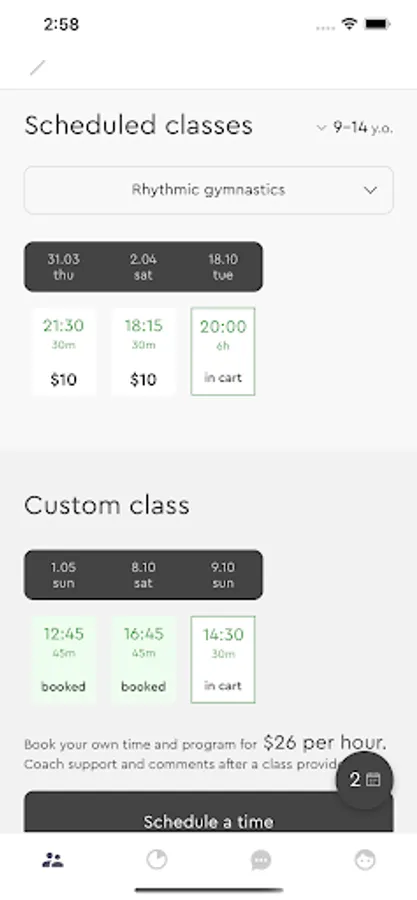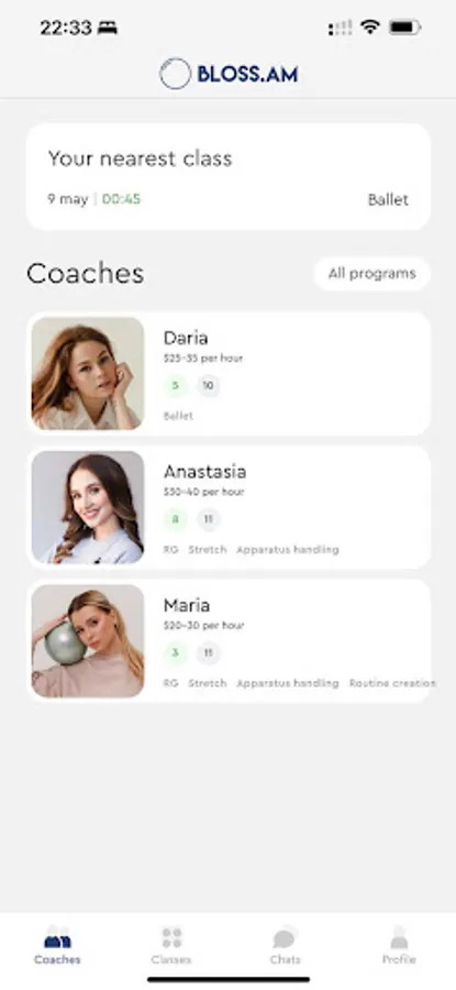 Our school employs professional Russian coaches who have extensive experience in rhythmic gymnastics as a gymnast and as a coach.