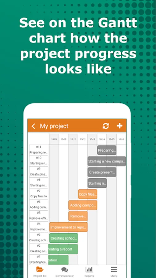 Thanks to the gantt chart you will see at what stage your project is and how many tasks left to complete.