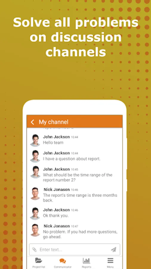 Thanks to the messenger you will be able to create discussion channels where you will be able to talk and solve problems related to the project.