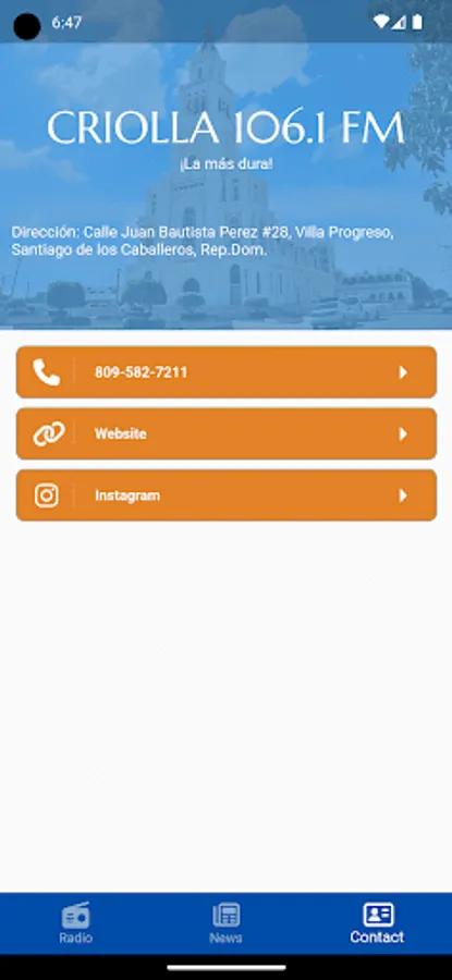 This is the official application of the Criolla 106.1 FM radio station, Santiago, Dominican Republic