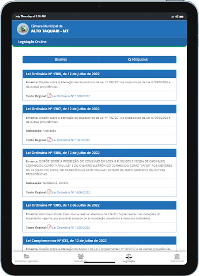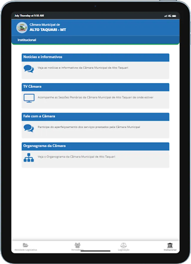 The Alto Taquari City Council application aims to facilitate communication with the population of the municipality about the work carried out by the current legislature.