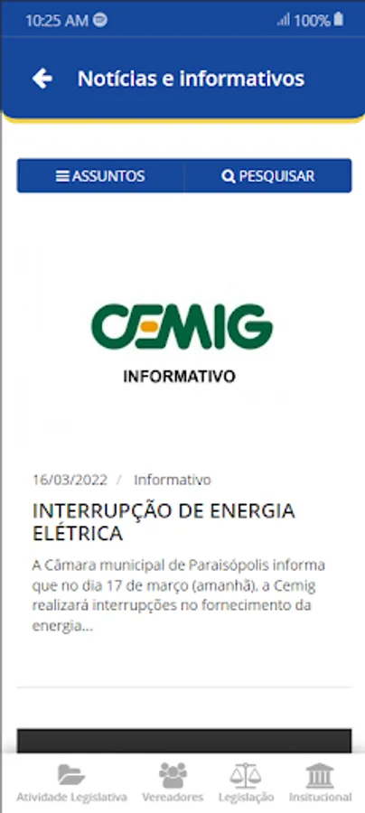 The application of the Municipality of Paraisópolis aims to facilitate communication with the population of the municipality about the work carried out by the current legislature.