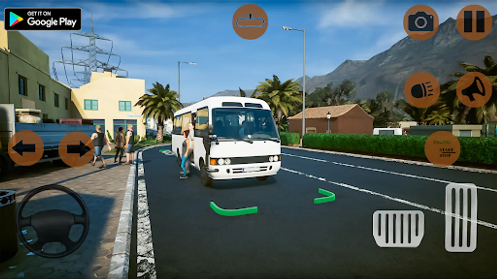 Coach Minibus Driving Simulator 2021 gives you a realistic bus driving experience in big open city and uphill locations!
