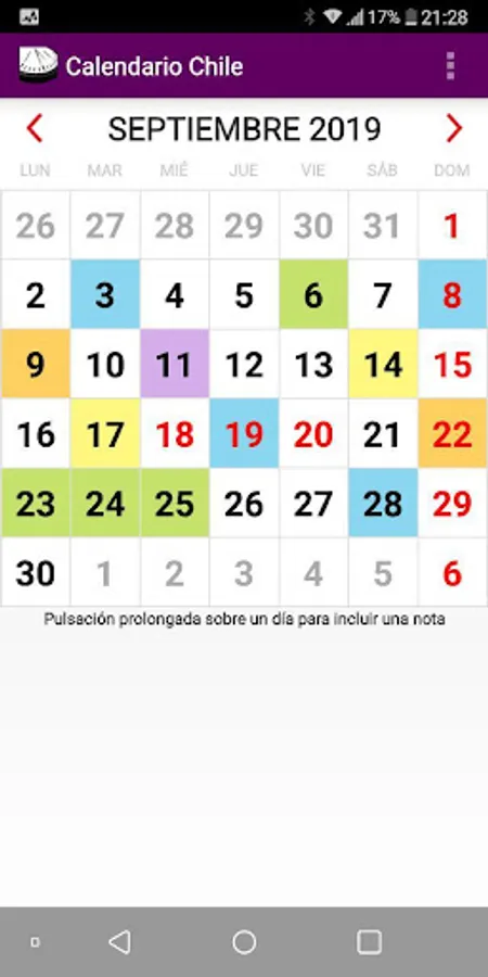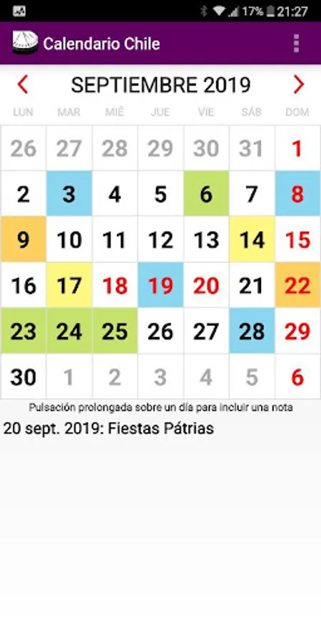 The calendar will be updated annually with the inclusion of new holidays in Chile.