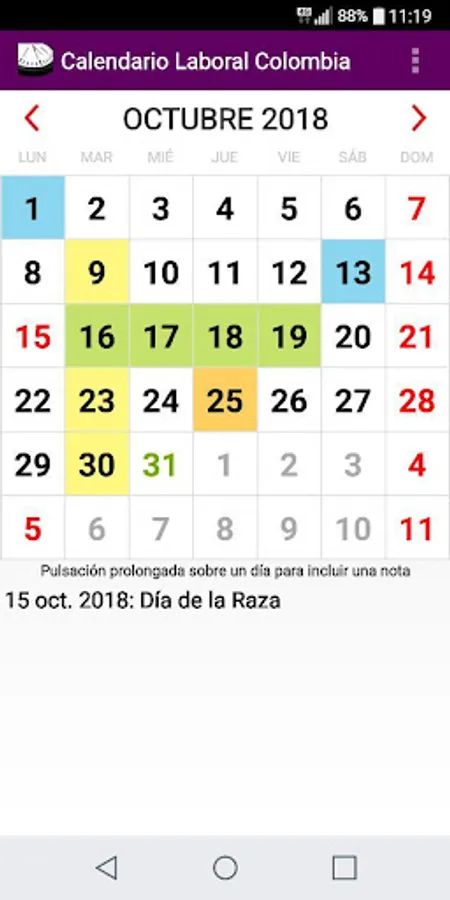 The calendar will be updated annually with the inclusion of new holidays and dates of interest in Colombia.