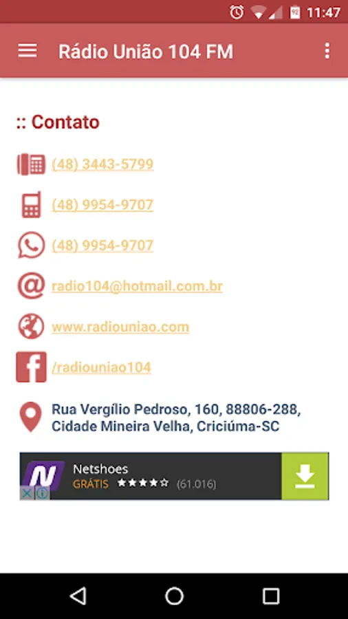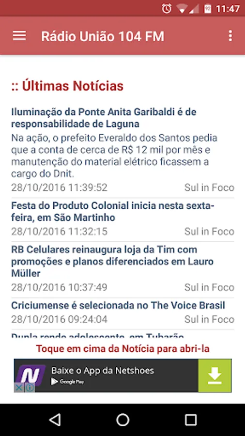 OFFICIAL application of Union Radio 104 FM Criciuma-SC.