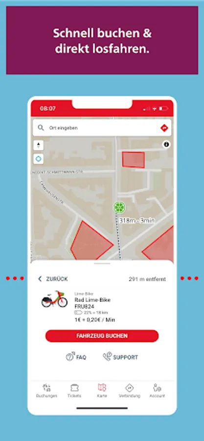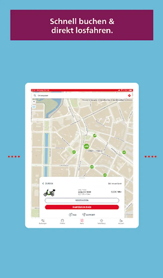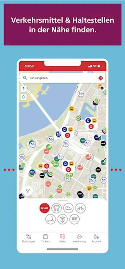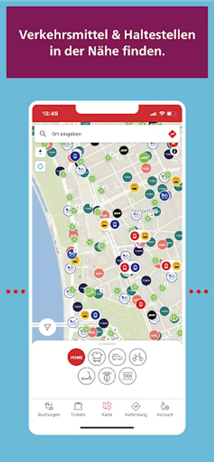 With redy you can easily get to your destination: Whether public transport, car sharing, bike sharing, e-scooters, electric scooters or taxis - the mobility platform of the Rheinbahn combines various providers for your mobility in and around Düsseldorf. redy takes you individually and flexibly from A to B.