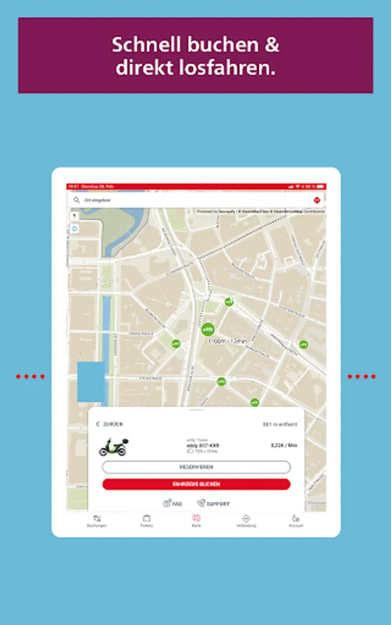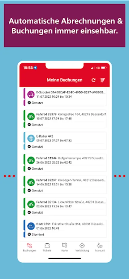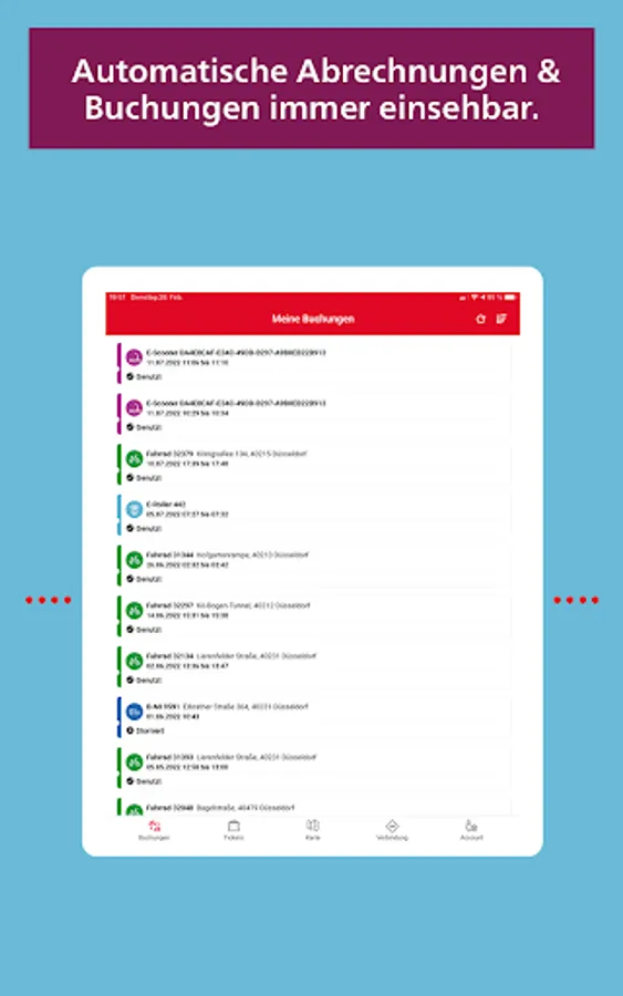 If you are already registered with "Meine Rheinbahn" via another digital channel, you only have to log in to redy with your user data. Otherwise, you can easily register in the app. Additional information may be required to use certain offers, which you enter once in the app.