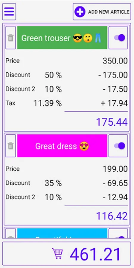 Manage your total price by disable or enable some articles from the list in order to adjust your budget.