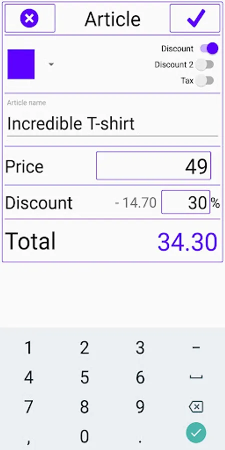Enter a price, its discount in percentage (%), a second discount and even a tax to have the instant final price.