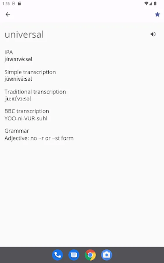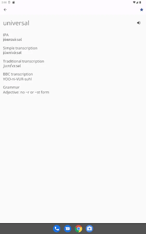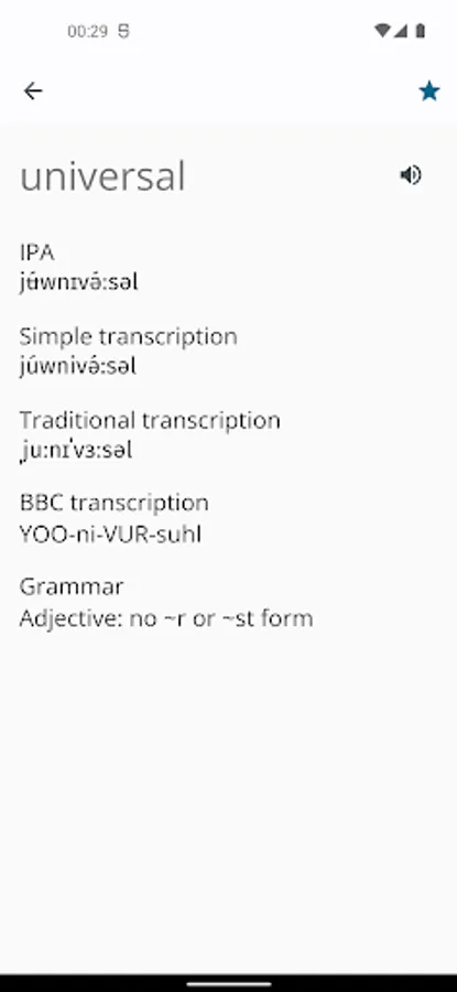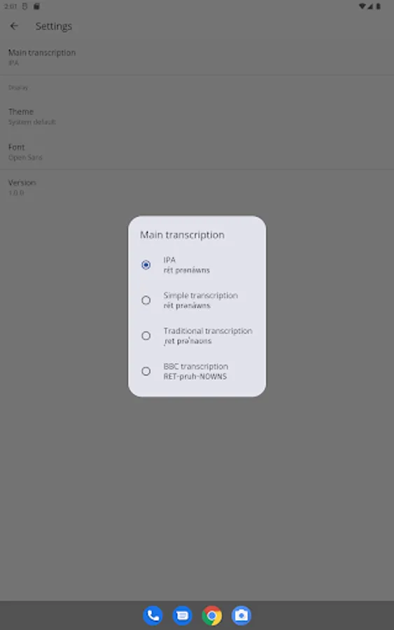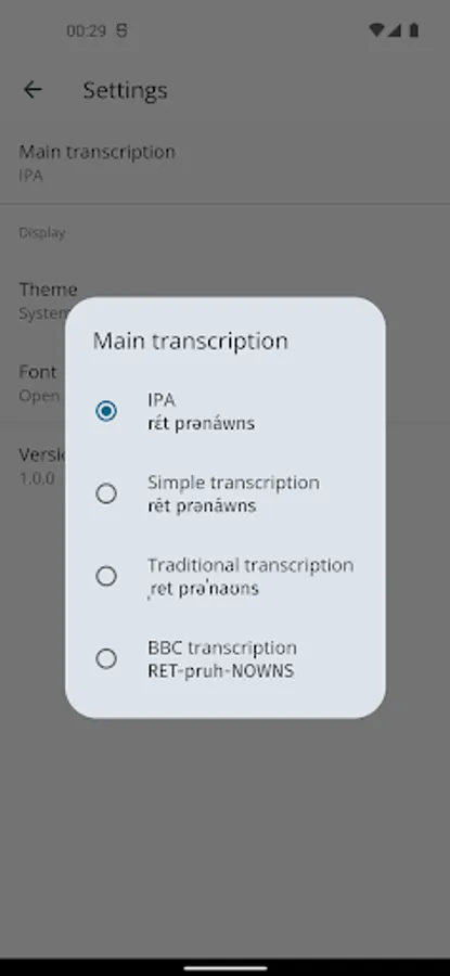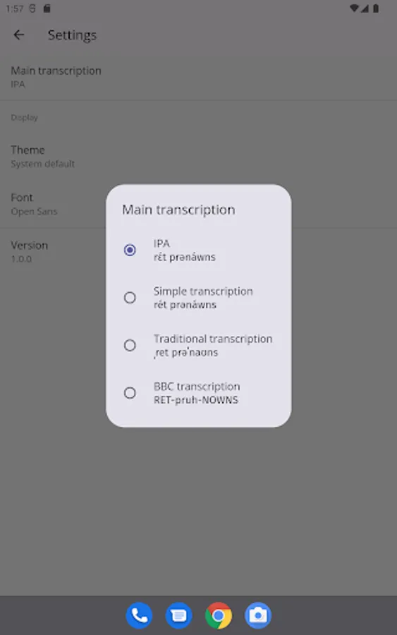 - Transcription options: display results in multiple transcription systems: IPA, Simple, Traditional and BBC Transcription.