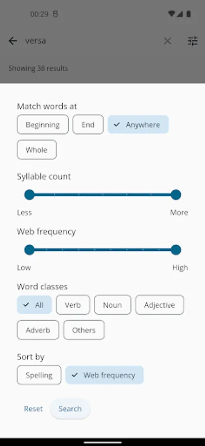 - Syllable count: limit search by number of syllables