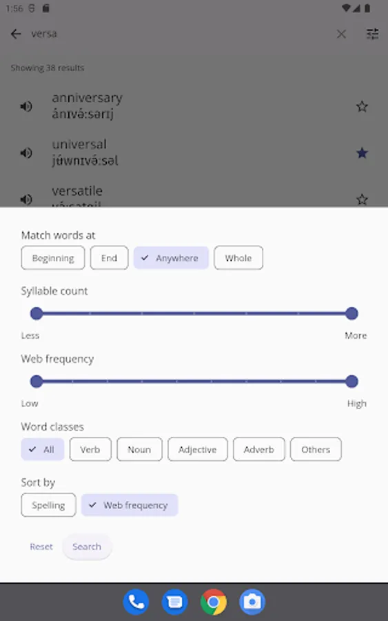 - Part of speech: specify the part of speech, such as verbs, nouns, adjectives when searching.