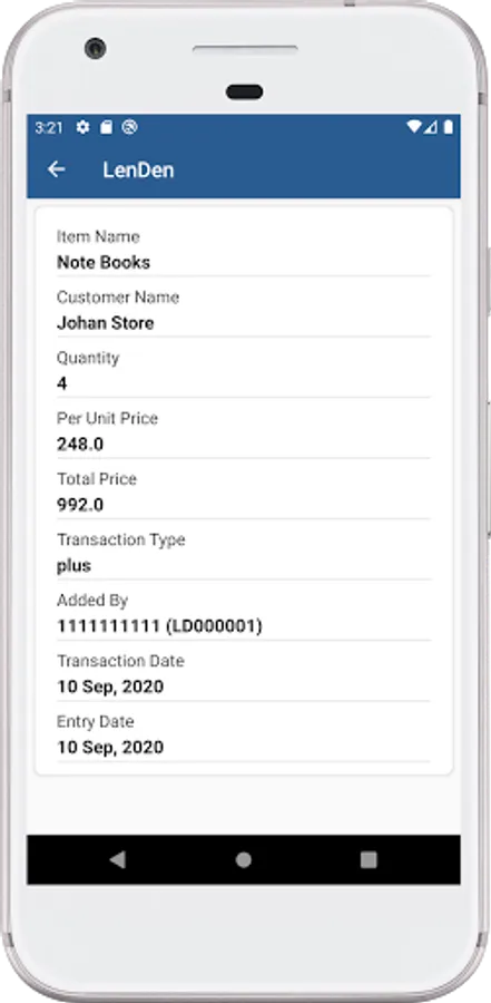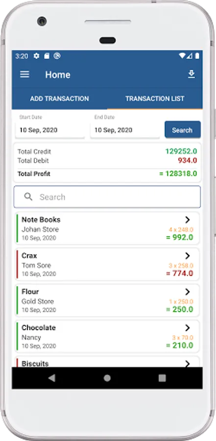 App helps to search transaction based on various parameters like item name, date price etc.