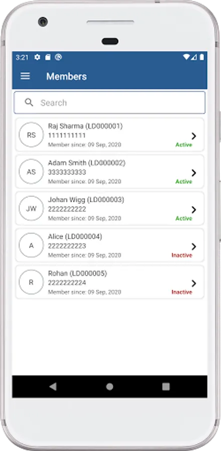 Members can be added to assist the transactions and can be controlled by activating and suspending them