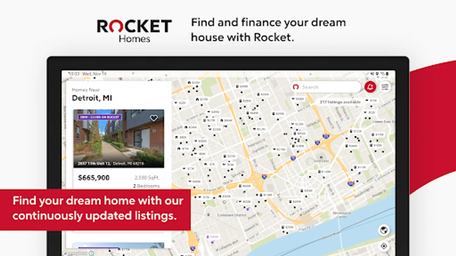 * Apply With Rocket Mortgage®: After finding your dream home through Rocket Homes, get connected with our sister company, Rocket Mortgage®, to see what financing options are available for you.