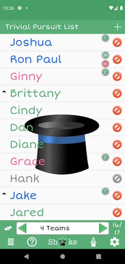 * Satisfying feeling of shaking a “virtual” hat to create teams