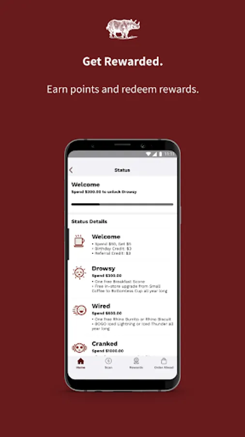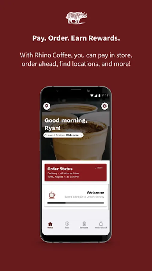 • Referral credit: tell your friends about Rhino Coffee and, when they download the app, you both get rewarded