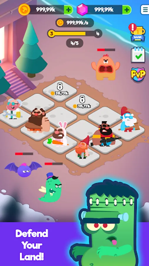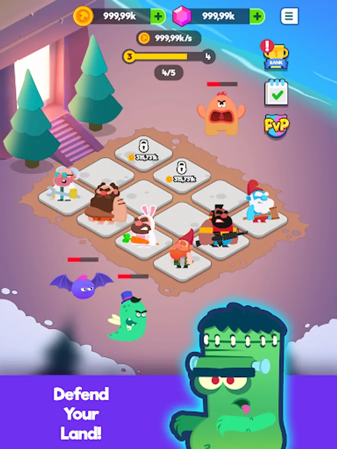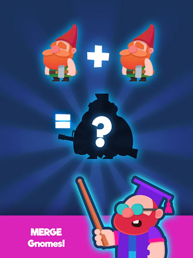 Fight monster that are terrorizing the land! Merge gnomes by dragging them on top of each other to fight off the waves of monsters and take down bosses to unlock new locations!