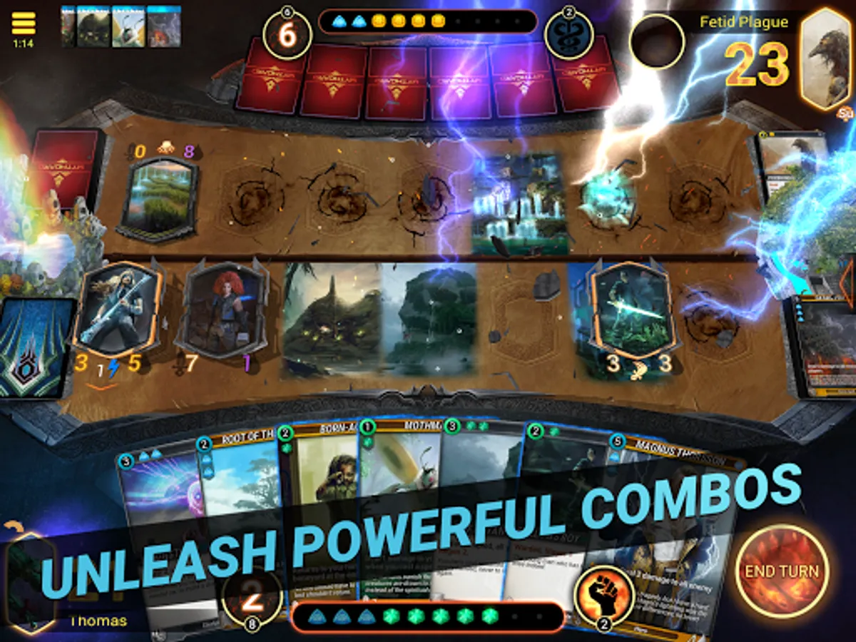 Mythgard is a CCG that allows for clever and interactive decisions. Experience a unique game with fast and fluid tactical action. Use spells, minions, enchantments, and artifacts to vanquish your opponents. Every play could mark the difference between victory and defeat. Your deck is not restricted to a single class or faction, opening a world of limitless possibility.