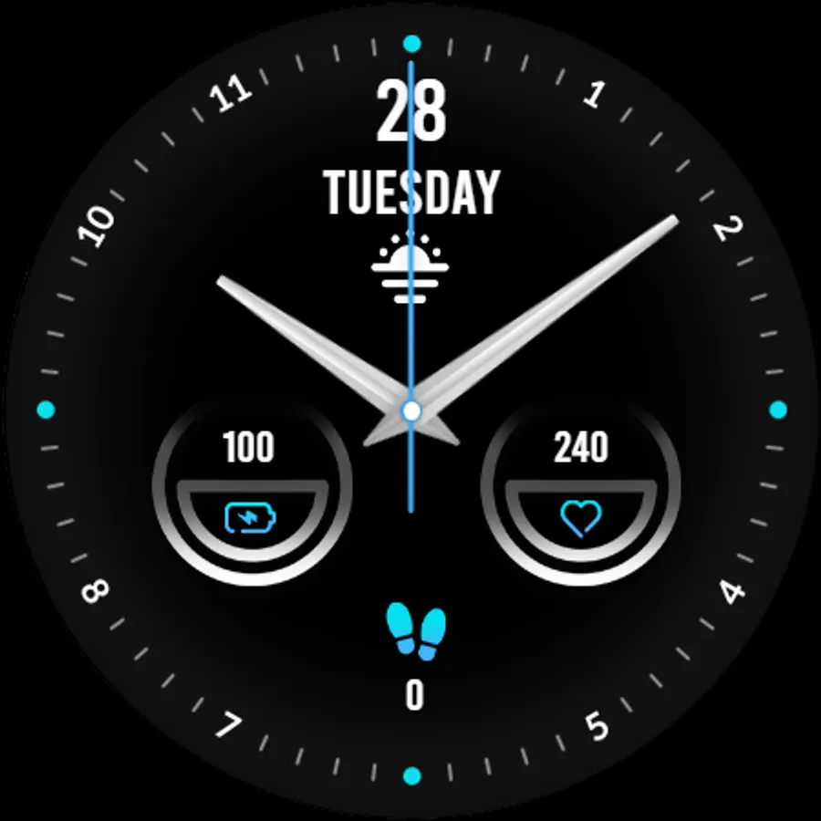 Black White Analog Watch Face Wear OS Analog Watch Face displays simple indexes with day, date, weather and battery display features, and most importantly heart rate and step meter features, but the wear os functions are already present in general, what distinguishes it is its unique and elegant-looking design.