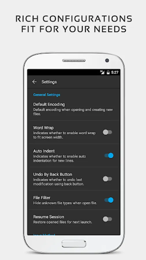 QuickEdit text editor includes a number of performance optimizations and user experience tweaks, making it faster and more responsive than other text editor apps commonly found on Google Play.